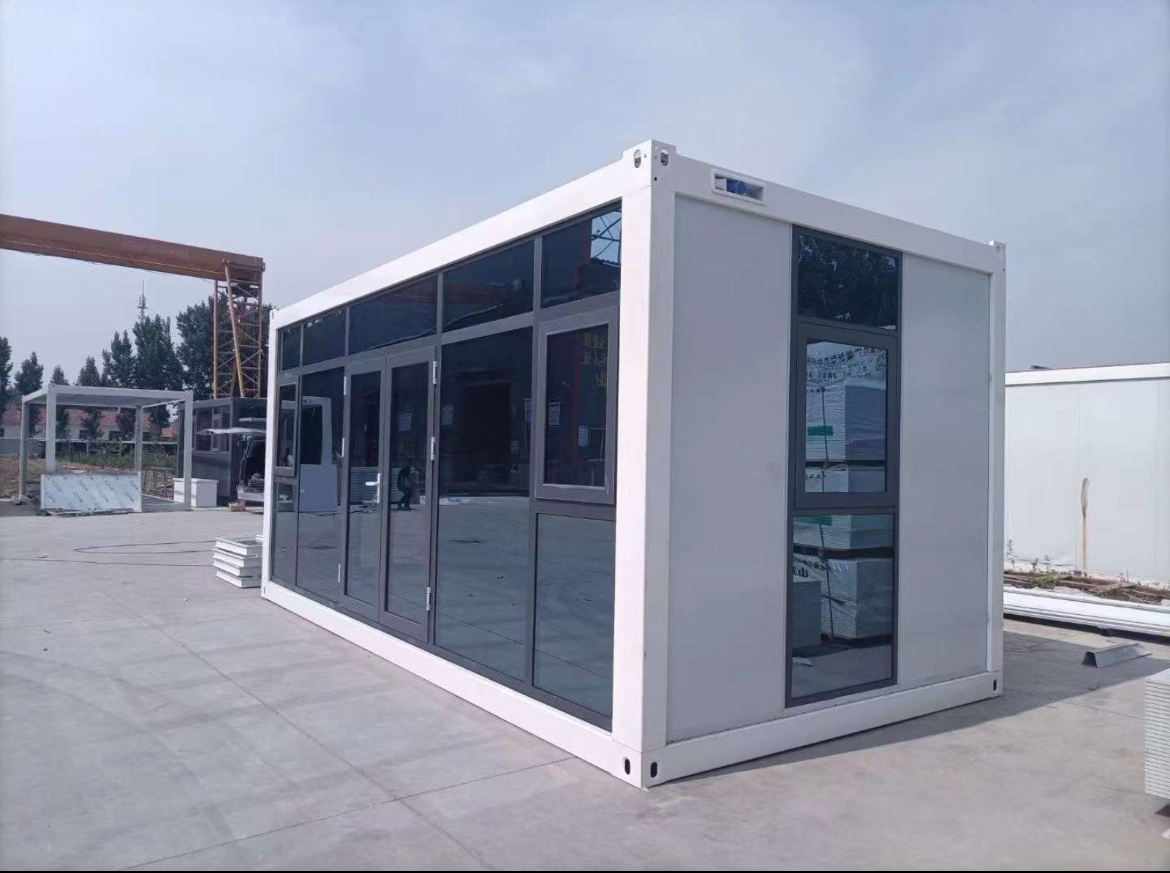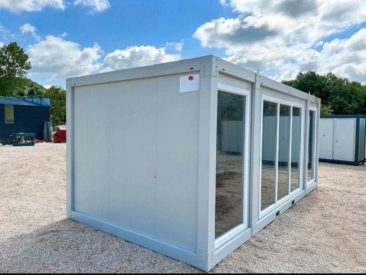 Model Glas, 240x600 cm boyutunda, tam cam cepheli ve yüksek yalıtımlı modern bir ünitedir. Ofis veya showroom için ideal olan bu şık yapı, özelleştirilebilir donanım ve uygun fiyat garantisi sunar.