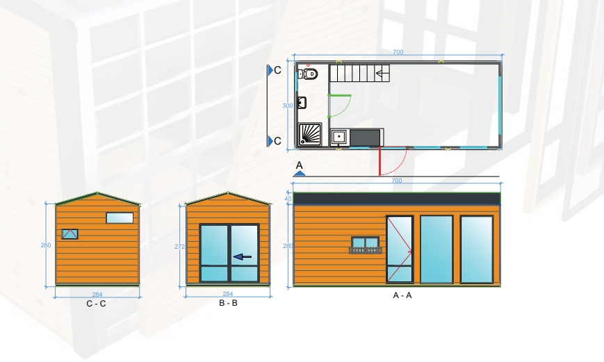 Sabit Bungalov (Römorksuz), 300 cm x 700 cm: